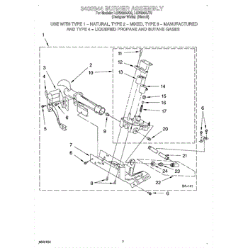 Parts for Whirlpool LGN2000JT0: 04 - 3402844 Burner Parts
