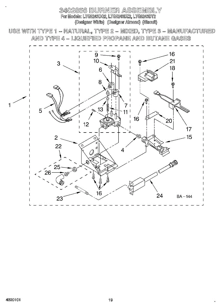 Parts for Whirlpool LTG5243DQ2: 16 - 3402856 Burner Parts