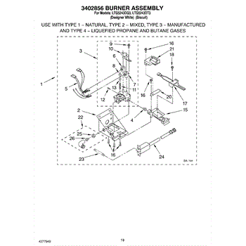 Parts for Whirlpool LTG5243DQ3: 16 - 3402856 Burner Assembly Parts