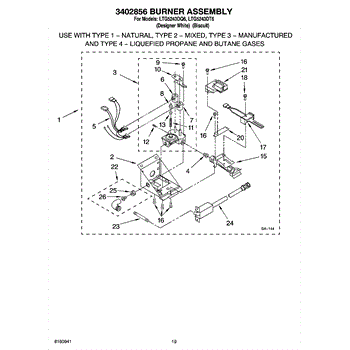 Parts for Whirlpool LTG5243DT6: 16 - 3402856 Burner Assembly, Optional Parts (Not Included) Parts