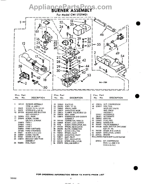 Parts for Whirlpool CWI1701W1: 04 - 343112 Burner Parts