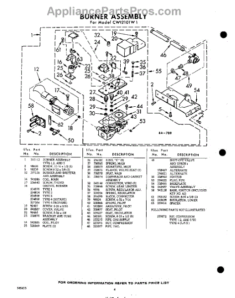 Parts for Whirlpool CWI2101W1: 04 - 343112 Burner Parts