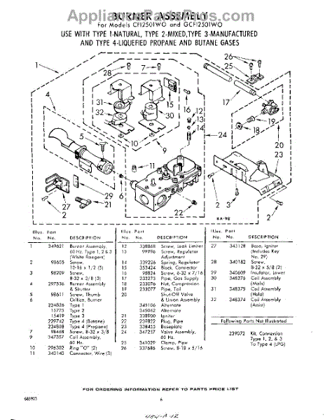Parts for Whirlpool CFI2501W0: 06 - 349621 Burner Parts