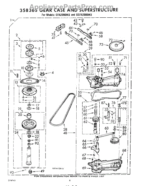Parts for Whirlpool 3CFA2000W3: 08 - 358365 Gear Case And Superstructure Parts