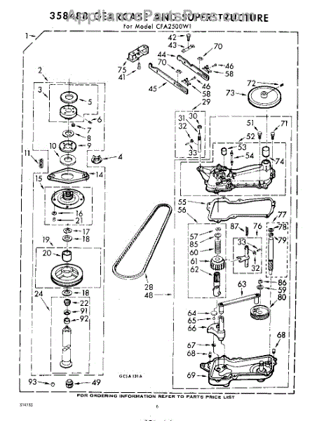 Parts for Whirlpool CFA2500W1: 06 - 358488 Gear Case And Superstructure Parts
