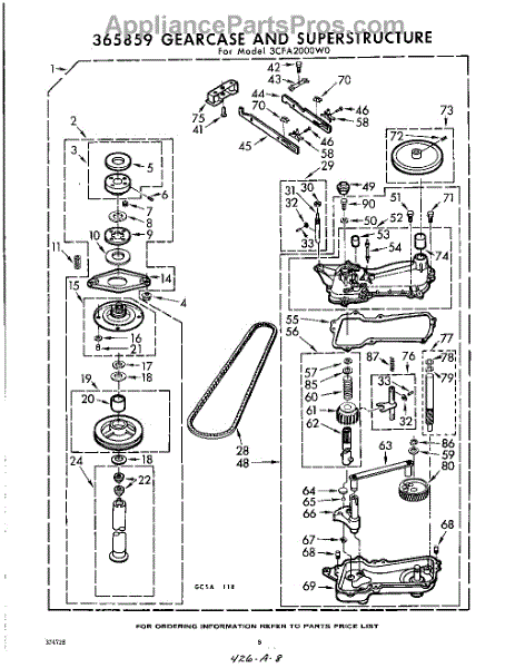 Parts for Whirlpool GCDA1700W1: 08 - 365859 Gear Case And Superstructure Parts