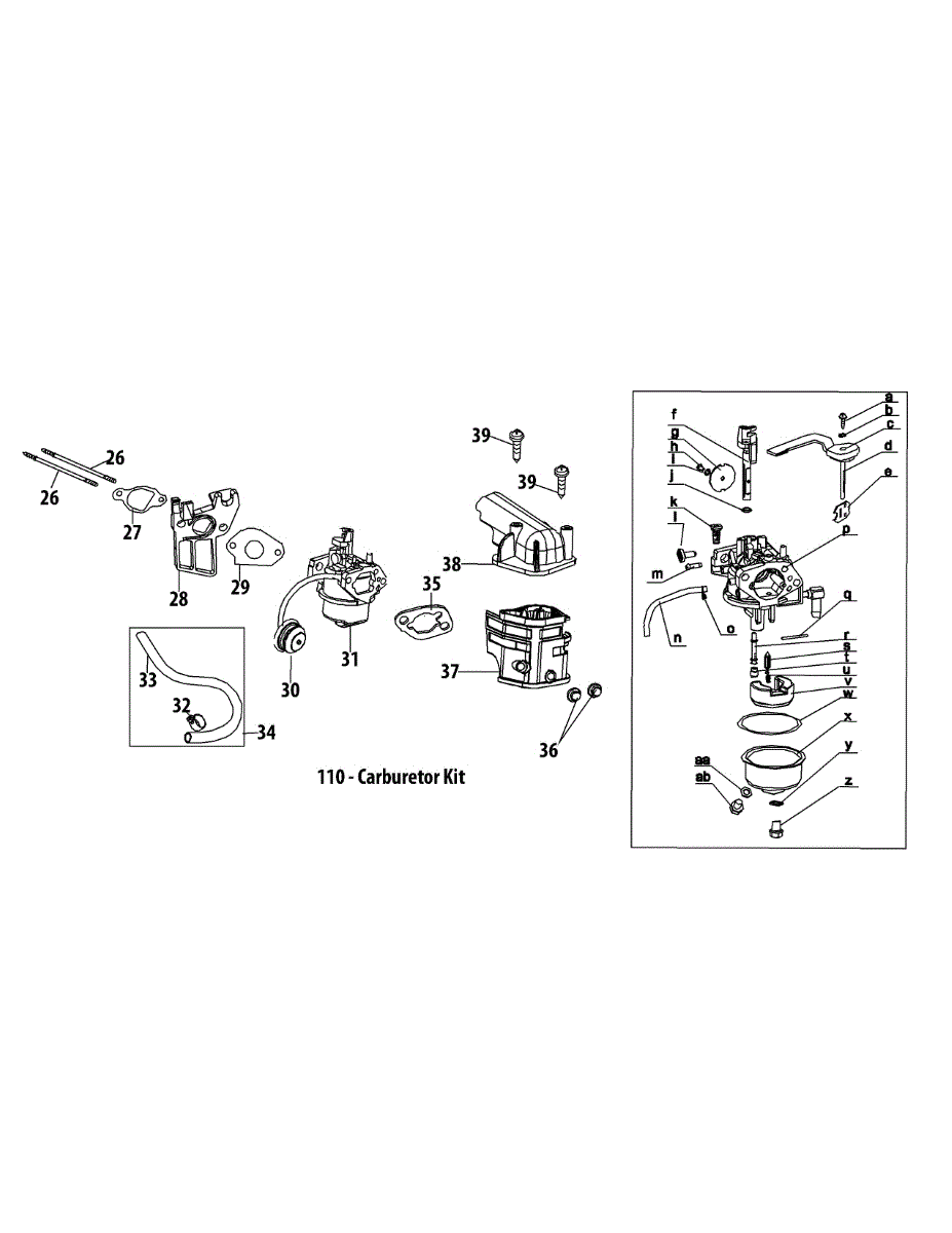 Carburetor for snow throwers and gas engines. Mixes air and fuel for combustion. Replace if cracked, clogged, or leaking to restore proper fuel delivery.