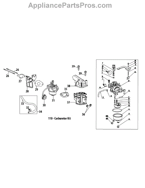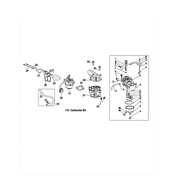 Carburetor for snow throwers and gas engines. Mixes air and fuel for combustion. Replace if cracked, clogged, or leaking to restore proper fuel delivery.