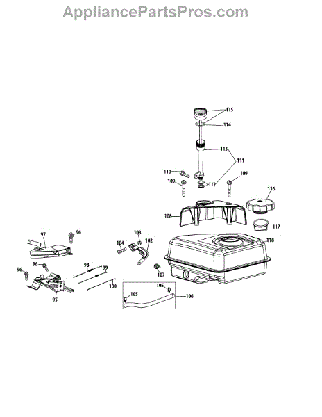 This fuel tank assembly can be used as a replacement part for the small engine of a snowblower or a tiller. The fuel tank assembly contains the fuel tank as well as the parts required to install the part. The purpose of the fuel tank is to store fuel for the engine and dispense the fuel in order to power the engine.A fuel tank assembly might be ordered as a complete replacement part if the fuel tank and its components suffer damage. This damage might manifest in the form of fuel leakages from punctures, holes, or corrosion to the material. If this damage affects the fuel tank and its components, it should be removed and replaced before using the appliance again. Remember to always wear gloves when handling, repairing, and operating outdoor equipment. This is an OEM part sourced directly from the manufacturer, MTD. It is sold individually. This fuel tank assembly is compatible with the following brands: MTD, Troy-Bilt, Yard Man, and Cub Cadet.