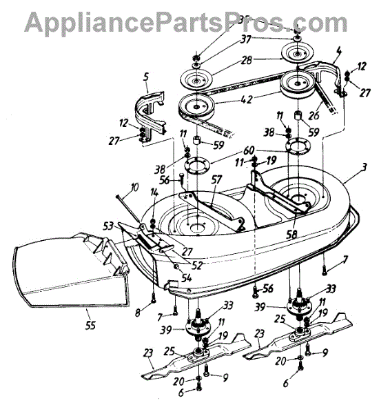 Blade adapter that mounts between the mower blade and spindle shaft. Replace if cracked, stripped, or worn to ensure secure blade attachment and safe operation.