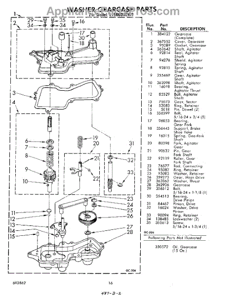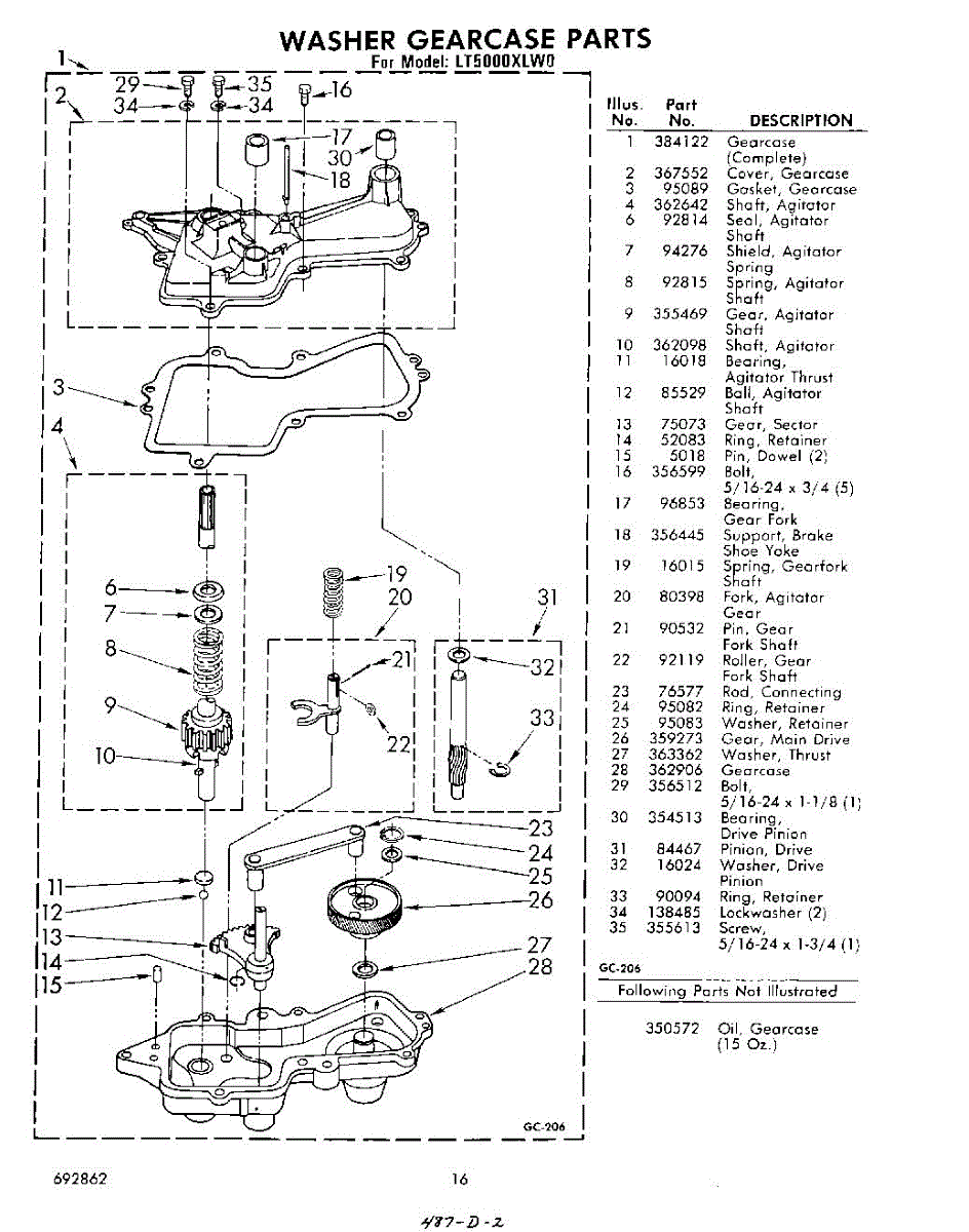 Parts for Whirlpool LT5000XLW0: 16 - 384122 Washer Gear Case Parts