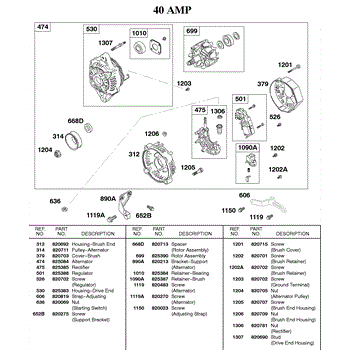Parts for Briggs & Stratton 589447-0308-E2: 40 Amp Alternator Parts