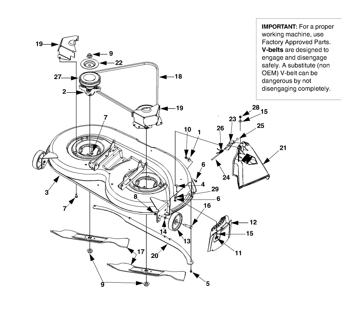 Replace your cracked or damaged 42-inch mower deck assembly. Complete deck kit for lawn tractors. Ideal when the original deck is bent, rusted, or beyond repair.