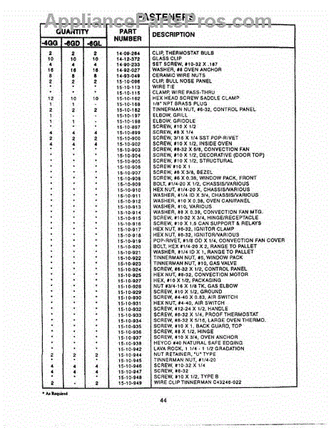 Parts for Thermador PRDS484GD: 43 - Fasteners Parts