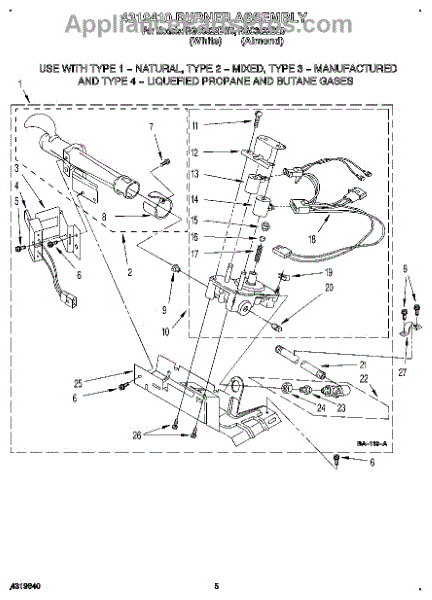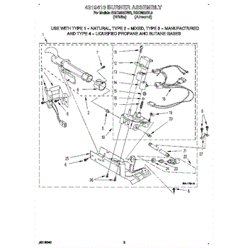 Parts for Roper RGC3622BL0: 03 - 4319410 Burner Assembly Parts
