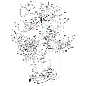 Hex screw fastener for securing lawn mower components. Replace if stripped, rusted, or missing to ensure proper assembly and equipment stability.