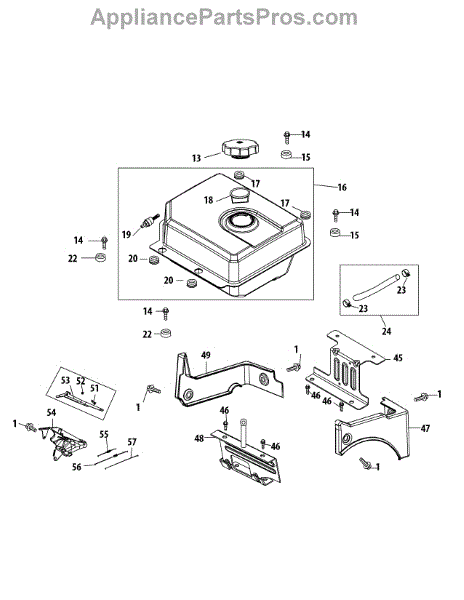 Replacement fuel tank for snow throwers and gas snowblowers. Holds gasoline for engine operation. Replace if cracked, leaking, or damaged.