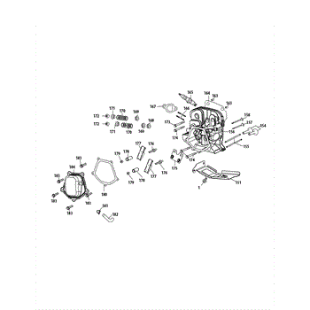 Rocker stud bolt that secures the rocker arm assembly in small engines. Replace if threads are stripped, bolt is bent, or stud is broken or missing.