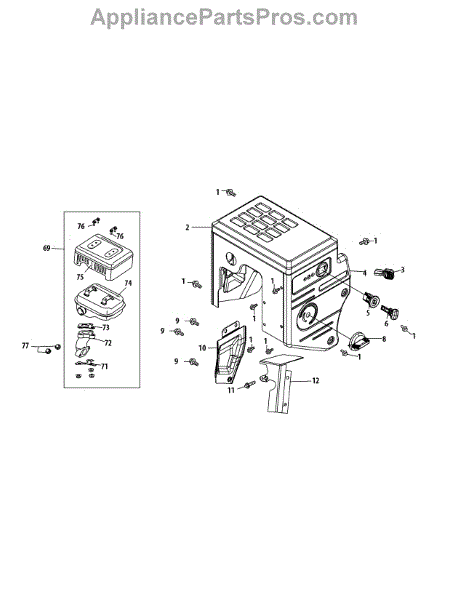 This part is a replacement muffler shield. This is a genuine OEM part made by MTD and has been sourced directly from the manufacturer. It is intended to replace a defective or broken muffler shield in snow blowers.The muffler shield protects the muffler and also ensures that the user is protected, as the muffler can become hot during equipment usage. This part will need to be replaced if detached, cracked, or in any way rendered ineffective. Wear work gloves to protect the hands and check that equipment is powered off and cooled down before starting the repair process. For more accurate information on how and where to use this muffler shield, the appropriate owner's manual and equipment diagrams should be referred to. This muffler shield is a genuine OEM part made of durable materials and is sold individually. It is suitable for use with snow blower models that have been manufactured by MTD, Craftsman, Troy-Bilt, and other brands.