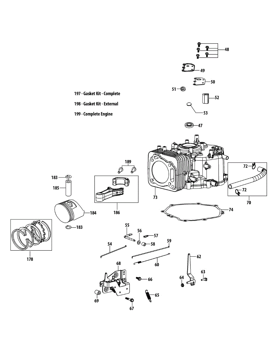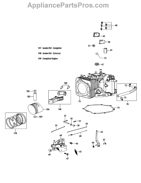Complete engine gasket kit for lawn tractors and walk-behind mowers. Replace when rebuilding engine or repairing oil leaks. Verify fit with your model number.