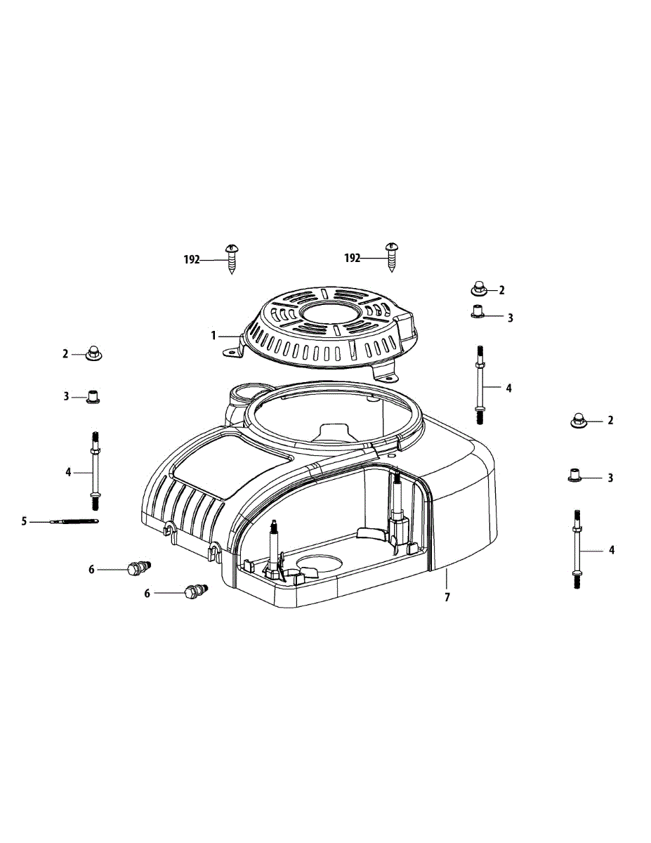 Engine shroud with integrated screen that covers and protects the engine cooling system. Replace if cracked, broken, or missing to restore proper airflow.