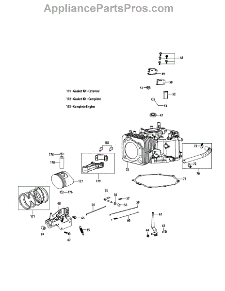 This connecting rod assembly is part of the piston engine that connects the piston to the crankshaft and works to rotate the crankshaft. If the connecting rod breaks or is damaged, the engine will not run. If the engine is making loud noises, has low oil pressure, or is using a lot of oil, the connecting rod should be inspected as it may be failing. If the connecting rod breaks during engine operation, the engine could be severely damaged by the rod jamming itself in the cylinder. Replace the connecting rod at the first sign of damage. This repair requires removing the engine. Make sure the engine is cool, and the mower is on a flat surface. Wear work gloves and safety goggles when repairing the mower. Use the diagram to remove the engine and locate the connecting rod assembly. Remove and replace the damaged rod. Inspect all parts as the mower is put back together. This connecting rod assembly is sold as an individual part. It is designed for use in lawnmowers and lawn tractors manufactured by MTD, Yard Machines, Cub Cadet, Husky, and Troy-Bilt.