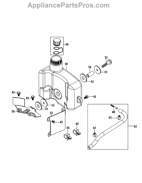 This replacement part is a fuel tank. It is a genuine replacement part made by MTD. This fuel tank is usually found in appliances that use fuel and engines to operate. The fuel tank is responsible for holding the fuel before the carburetor uses it to start the engine during use. A new fuel tank might be needed if the user notices that the current tank is cracked, punctured, or otherwise damaged. This can be due to normal wear and tear. It is recommended that the user wear gloves during this repair as the fuel tank can still be full. This fuel tank is sold individually and is sourced directly from the manufacturer to ensure proper fit. This part is also a genuine OEM replacement part.