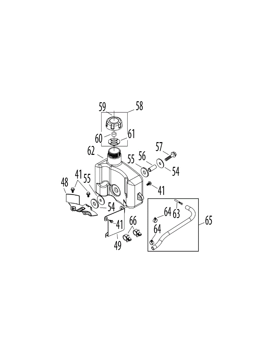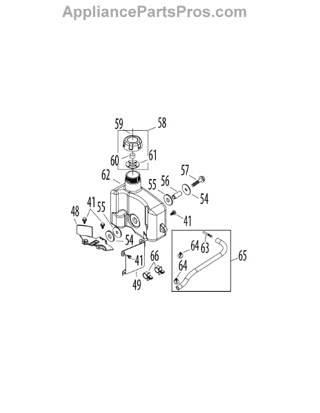 Replacement fuel tank assembly for lawn mowers and outdoor power equipment. Installs on the engine to hold fuel. Needed when original is cracked or leaking.