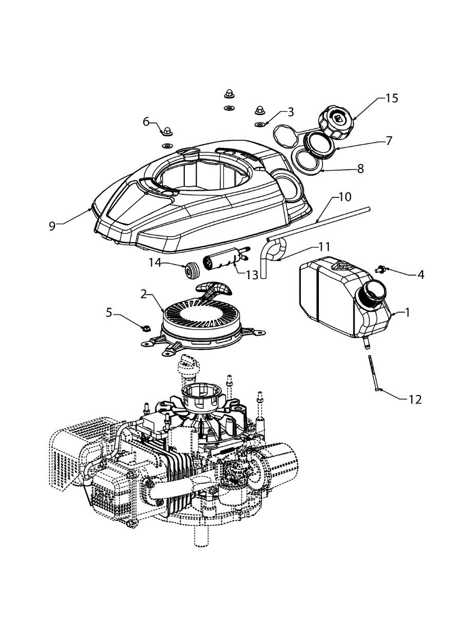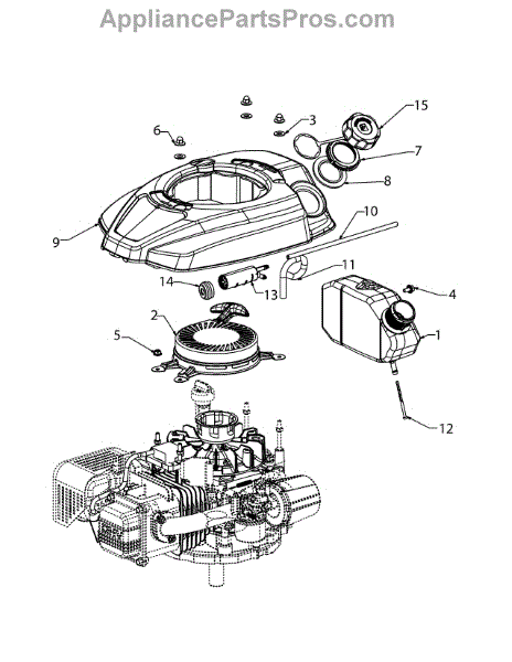 Replacement fuel tank for walk-behind mowers, tillers, and outdoor power equipment. Installs between engine and carburetor. Order when cracked or leaking.