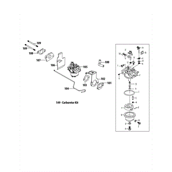 This part is a replacement carburetor kit. This is a genuine OEM part made by MTD and has been sourced directly from the manufacturer. This part is intended to replace a defective or broken carburetor in various models of lawn tractors and other small engine outdoor power equipment. Carburetors are an essential component of any equipment that is powered by an internal combustion engine, as they mix the correct amount of fuel and air. If the carburetor is malfunctioning, the equipment may not be power on or may run inefficiently. Wear work gloves to protect the hands and check that equipment is powered off and cooled down before starting the repair process. For more accurate information on how and where to install this carburetor assembly, the appropriate owner's manual and equipment diagrams should be referred to. This carburetor assembly is a genuine OEM part made of durable materials and is sold individually. It is suitable for use with lawn tractors and other small engine outdoor power equipment models that have been manufactured by MTD, Craftsman, and other brands.