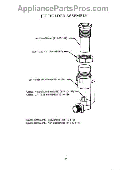 This LP main jet regulates propane flow to a surface burner to maintain a clean, stable flame. Replace a clogged or incorrect jet to restore proper burner performance, especially when converting a cooktop or range from natural gas to LP.