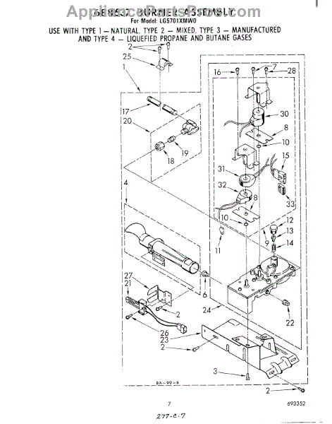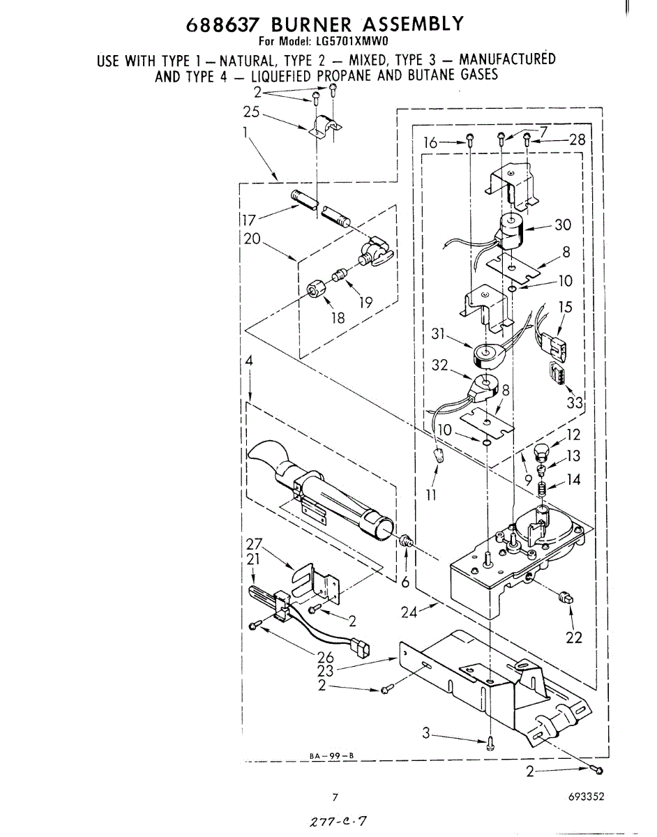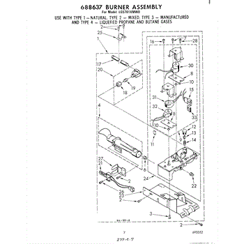 Parts for Whirlpool LG5701XMW0: 05 - 688637 Burner Assembly Parts