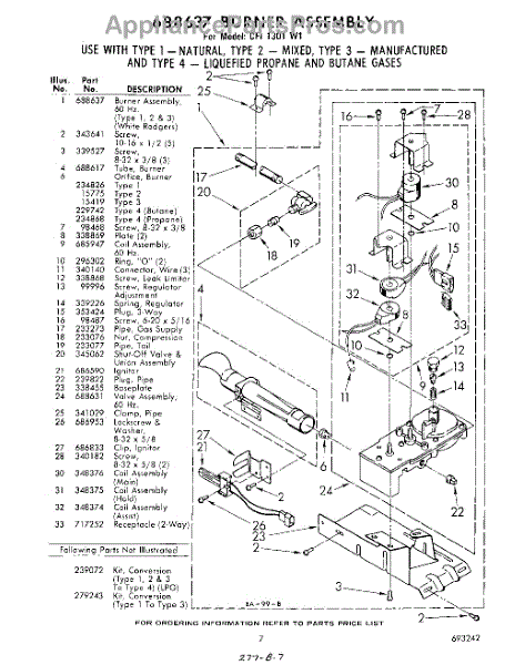 Parts for Whirlpool CFI1301W1: 07 - 688637 Burner Parts