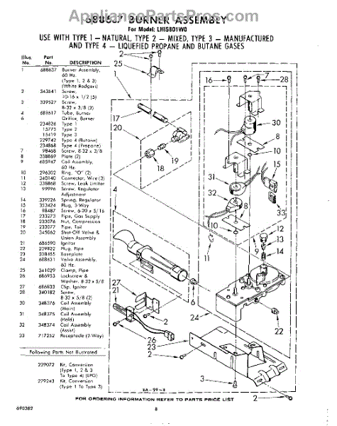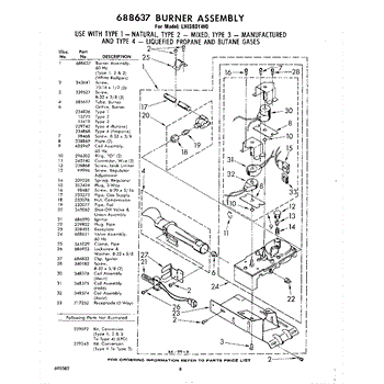 Parts for Whirlpool LHI5801W0: 08 - 688637 Burner Parts