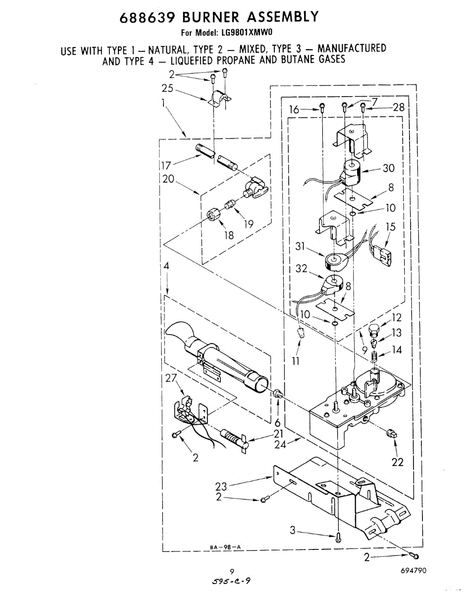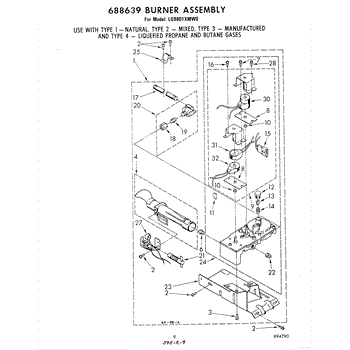 Parts for Whirlpool LG9801XMW0: 06 - 688639 Burner Parts