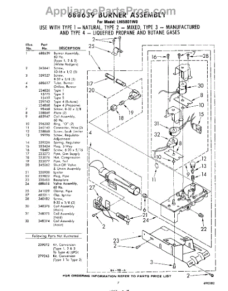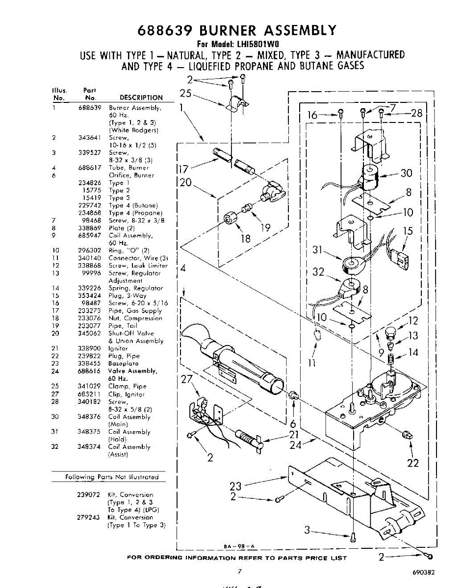 Parts for Whirlpool LHI5801W0: 07 - 688639 Burner Parts