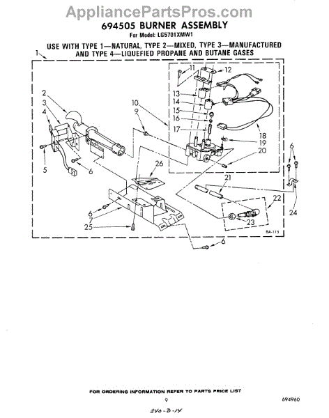 Parts for Whirlpool LG5701XMW1: 07 - 694505 Burner Parts