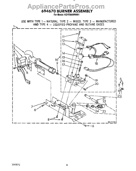 The LP Conversion Kit is an OEM component for Whirlpool and KitchenAid gas dryers. It allows conversion from natural gas to liquid propane fuel operation. Over time in gas-powered dryers, improper gas/air mixture causes part wear like weakened burner components. This is risky if overlooked but converting to an alternative fuel safely remedies.
