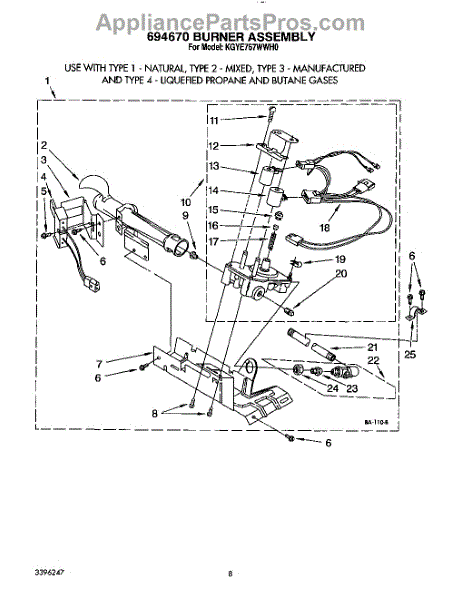 Parts for Kitchenaid KGYE767WWH0: 05 - 694670 Burner Assembly Parts