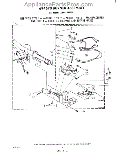 Parts for Whirlpool LG5601XMW0: 04 - 694670 Burner Assembly Parts