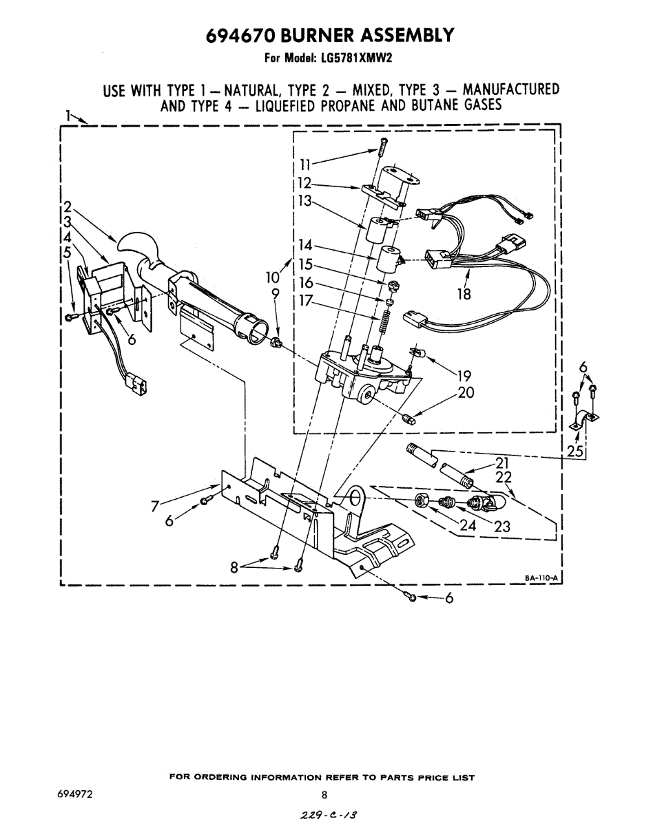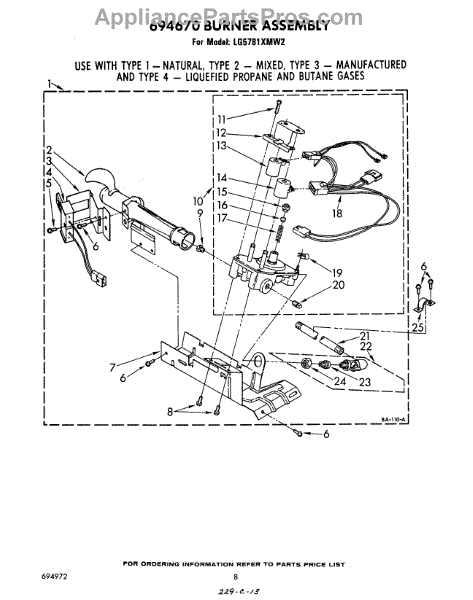 Parts for Whirlpool LG5781XMW2: 05 - 694670 Burner Assembly Parts