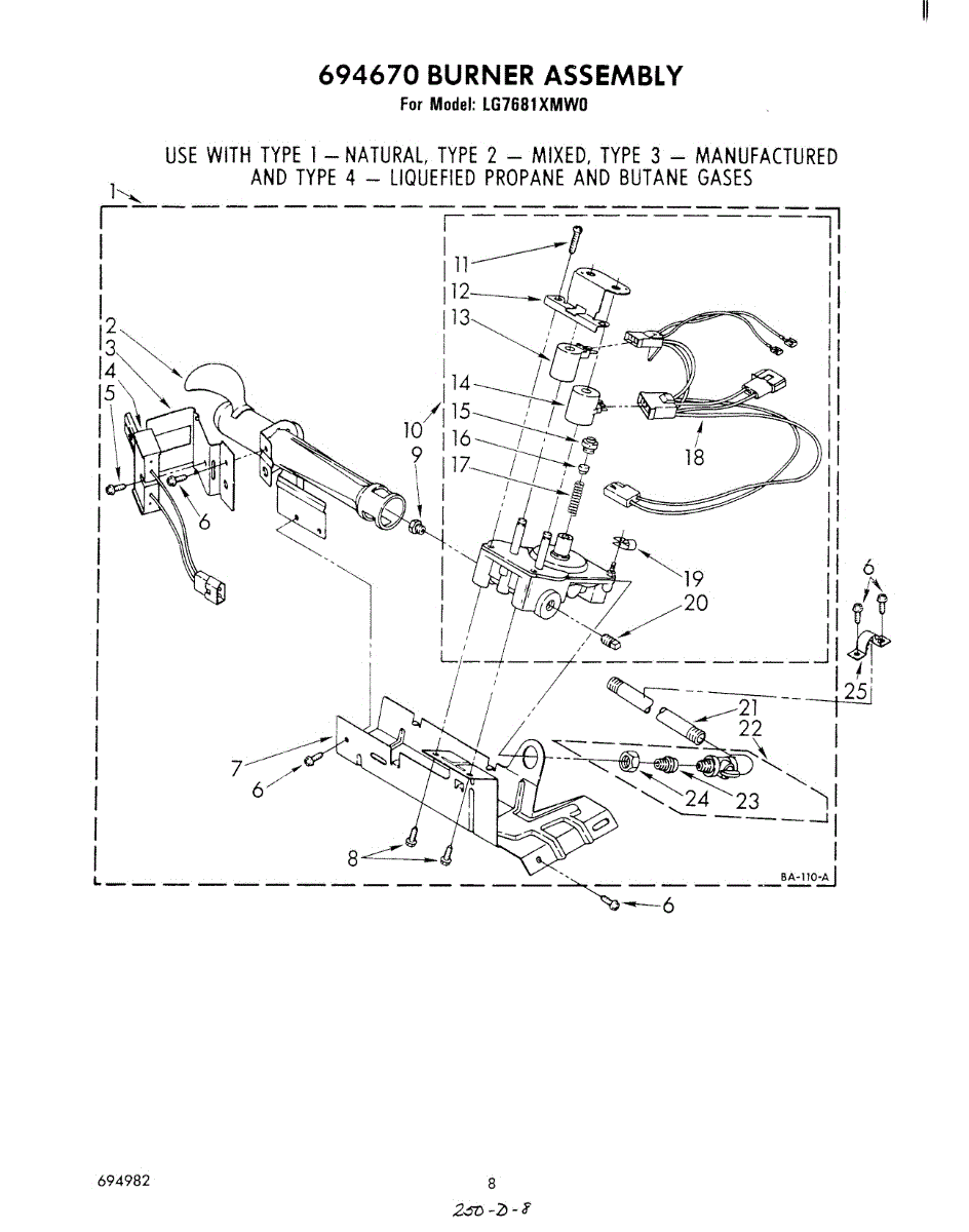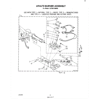 Parts for Whirlpool LG7681XMW0: 05 - 694670 Burner Assembly Parts