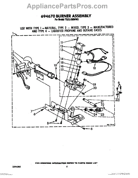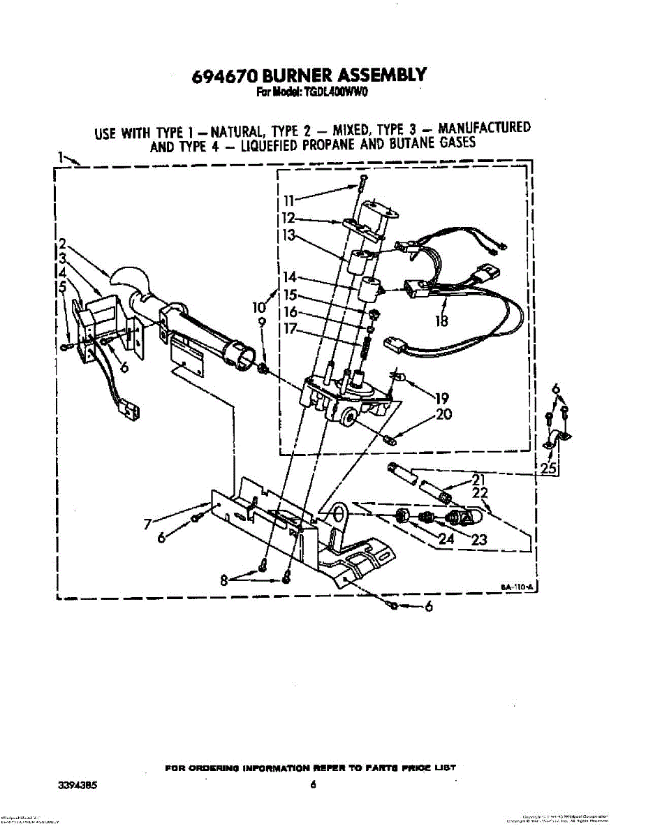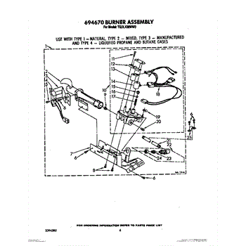 Parts for Whirlpool TGDL400WW0: 04 - 694670 Burner Assembly Parts