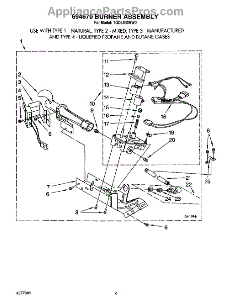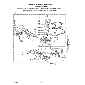 Parts for Whirlpool TGDL640AN0: 04 - 694670 Burner Assembly Parts