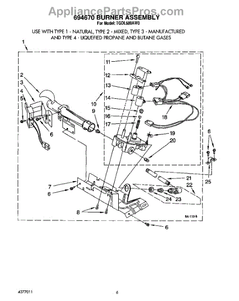 Parts for Whirlpool TGDL680AN0: 04 - 694670 Burner Assembly Parts
