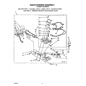 Parts for Whirlpool TGDL680AW0: 04 - 694670 Burner Assembly Parts