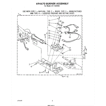 Parts for Whirlpool CF1301W3: 06 - 694670 Burner Parts