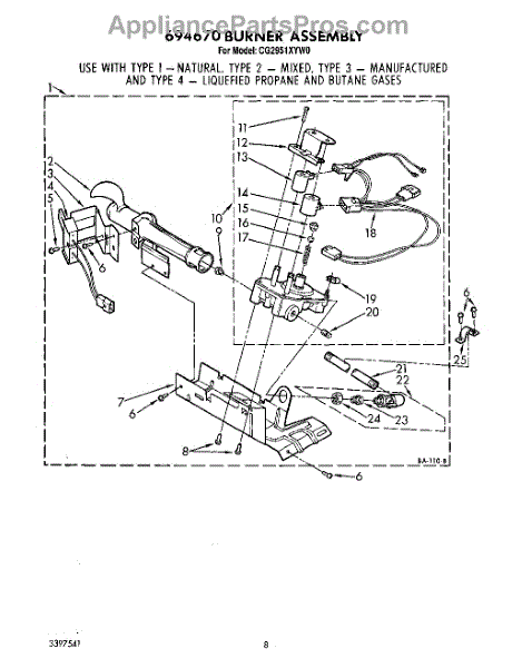 Parts for Whirlpool CG2951XYG0: 05 - 694670 Burner Parts