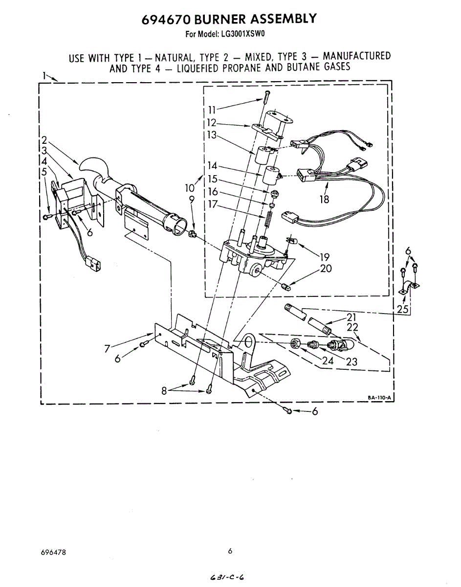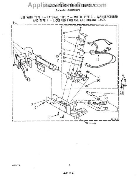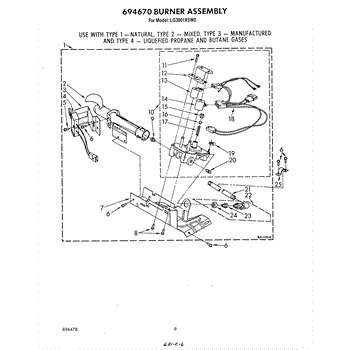 Parts for Whirlpool LG3001XSW0: 04 - 694670 Burner Parts