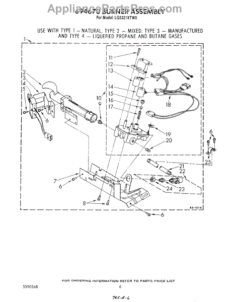 Parts for Whirlpool LG5321XTN0: 04 - 694670 Burner Parts